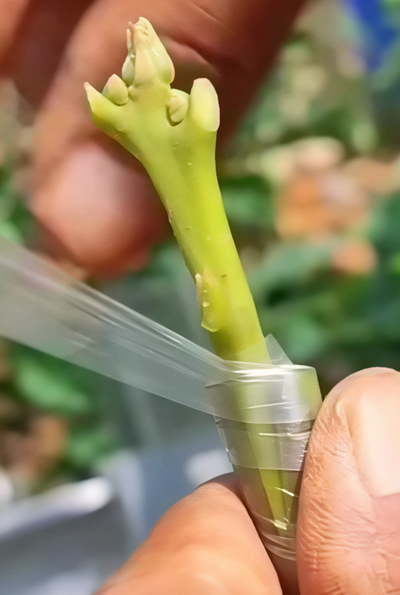 Scions are healthy young branches taken from a mature avocado tree and used for grafting onto a rootstock to grow a new tree with the same fruit quality.